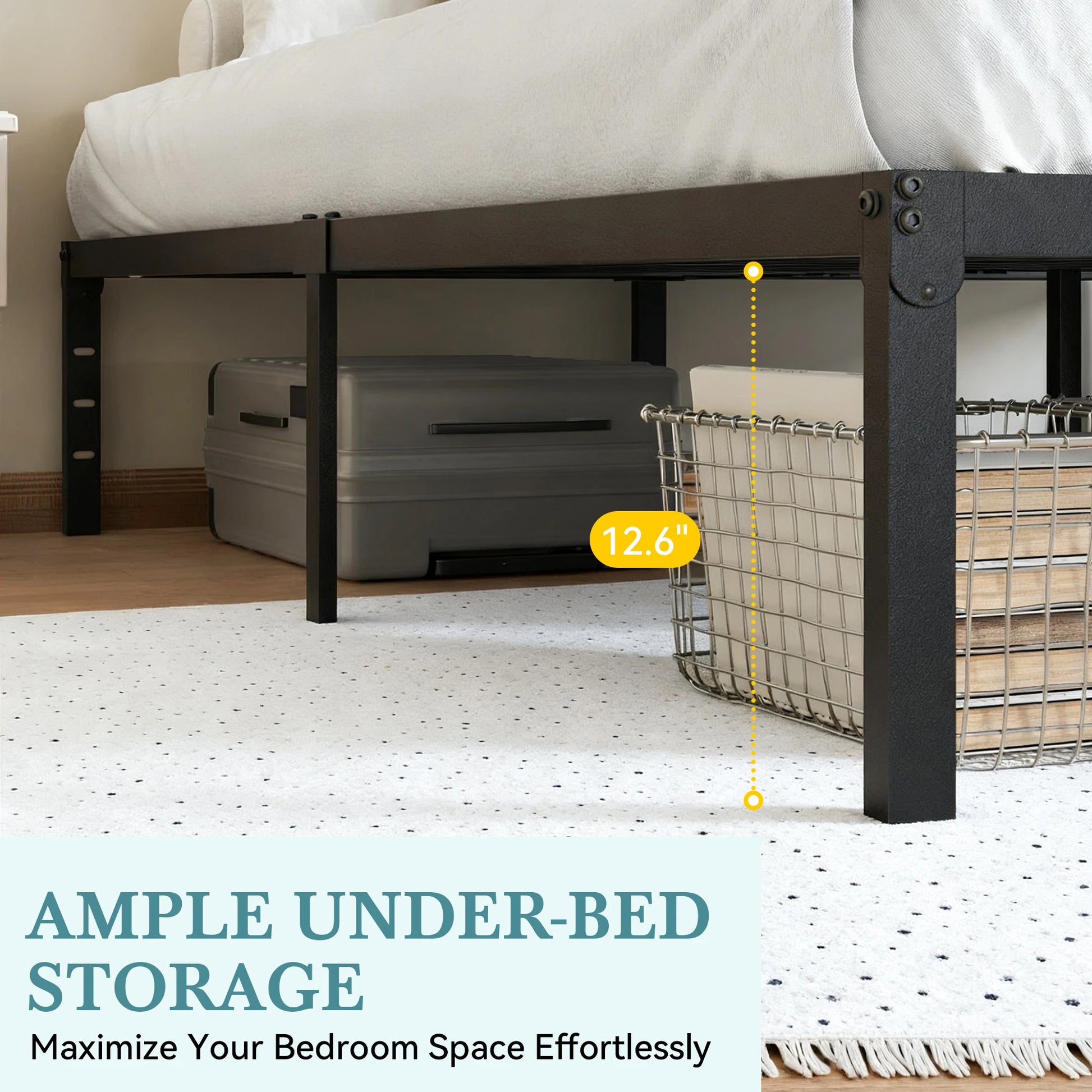 - 14-inch under-bed clearance gives you space to stash bins, luggage, bedding, and seasonal gear out of sight yet within easy reach.